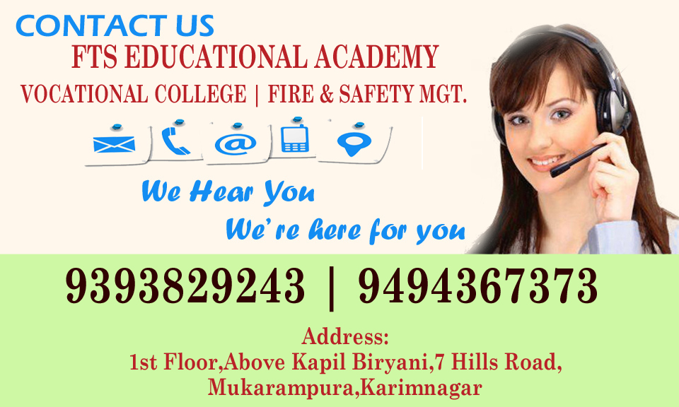 FREE FREE FREE AC TECHNICIAN | DCA, MS OFFICE, PGDCA | DTP | TAILORING | BEAUTICIAN | FIRE & SAFETY PROGRAMMES WITH CERTIFICATIONS.JOIN OUR EXCITING SUMMER CRASH COURSES TO ENHANCE YOUR SKILL & KNOWLEDGE.(HURRY LIMITED PERIOD OFFER) REGISTER TODAY JUST BY PAYING ONLY REGISTRATION AND EXAM FEE *T&C APPLY For further details: Pl : visit or call FTS EDUCATIONAL ACADEMY| beside Raghavendra mess MUKARAMPURA|KARIMNAGAR Call:9393829243 |9494367373 | 9533387086 FIRST TIME IN KARIMNAGAR THE ONLY INSTITUTE FTS Institute of Fire & Safety Management Offerring NEBOSH IGC & IDIP (LEVEL 6) | Registration Open Now Exam: Safety Officer : International NEBOSH/IOSH/OSHA Slot Registration and Diploma Fresh Batches Admission are in Progress | Fresh Admission 2024|Current Academic Year - JAN-24| Affiliation Valid Till - JAN-2024